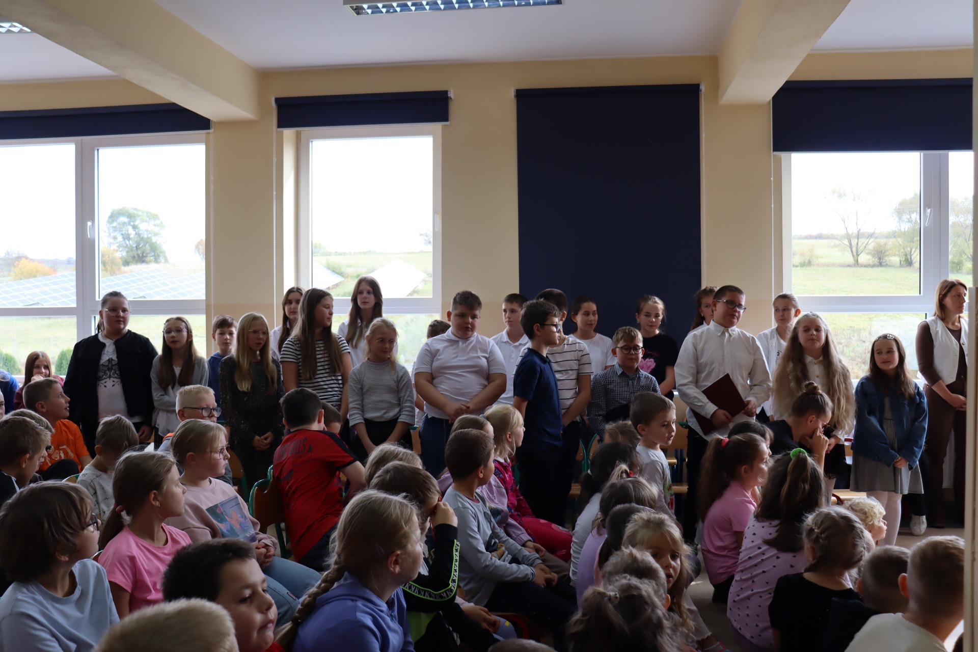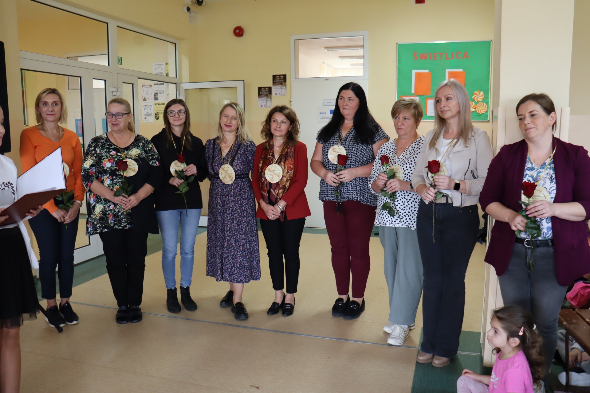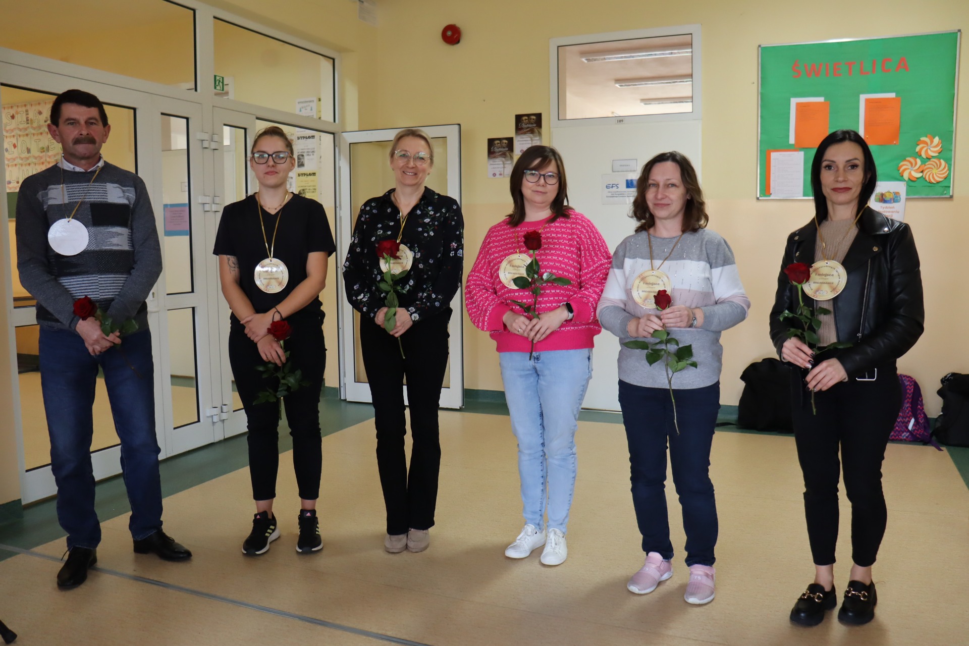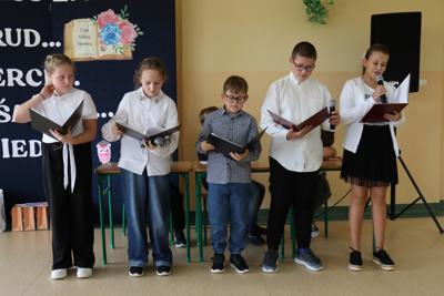 W piątek, 17 października, w naszej szkole odbyła się uroczysta akademia z okazji Dnia Edukacji Narodowej. Był to szczególny dzień, w którym cała społeczność szkolna spotkała się, by wspólnie świętować ten ważny dzień. Na początku głos zabrała pani Dyrektor, która w swoim przemówieniu podkreśliła, jak ważną rolę odgrywają nauczyciele i pracownicy szkoły w życiu młodych ludzi. Złożyła serdeczne życzenia wszystkim pedagogom, życząc im zdrowia, cierpliwości i satysfakcji z pracy. Następnie w części artystycznej, uczniowie klas 4 i 5 oraz chór szkolny, przedstawili krótki program artystyczny, nawiązujący do olimpijskich dyscyplin, w których metaforycznie „współzawodniczyli” nauczyciele. Kulminacyjnym momentem akademii było wręczenie symbolicznych medali olimpijskich dla wszystkich pracowników naszej szkoły.