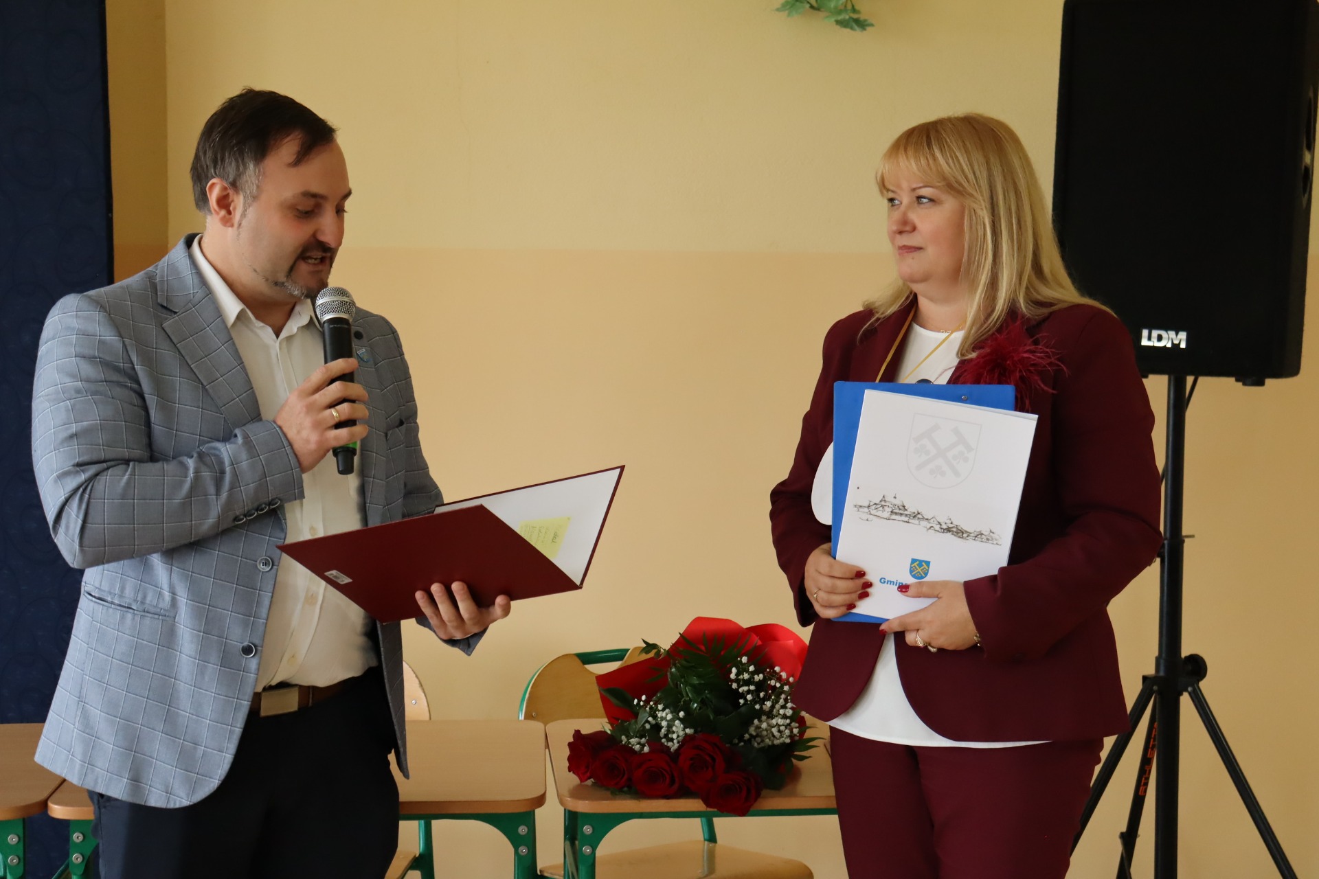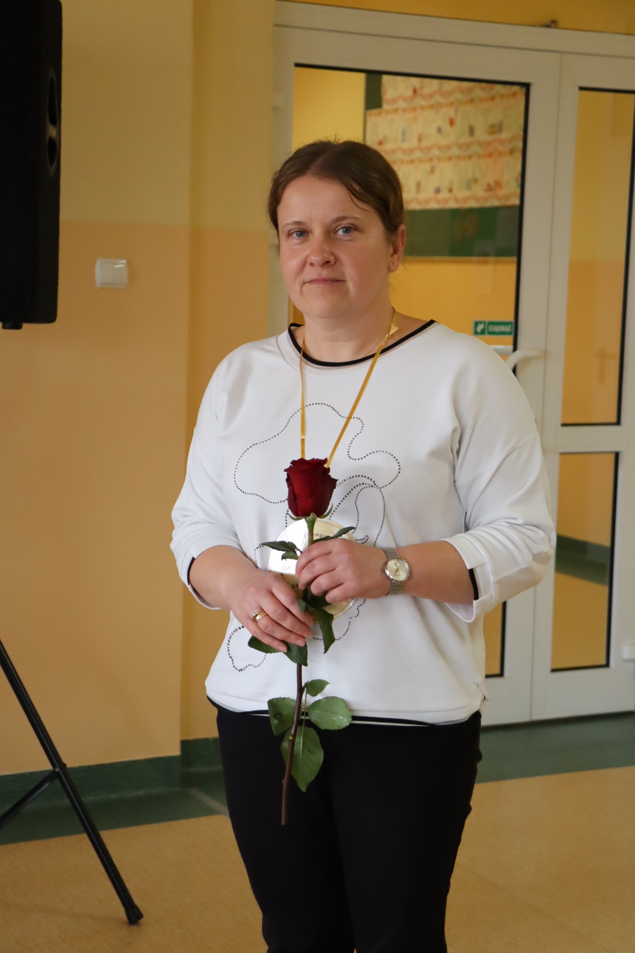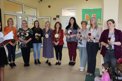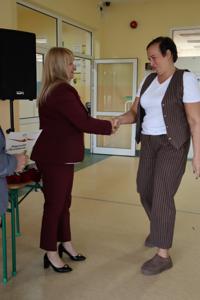 Na zakończenie pani Dyrektor podziękowała uczniom za zaangażowanie w przygotowanie uroczystości oraz wręczyła Nagrody Dyrektora dla Pani Janiny Szczurek za szczególne osiągnięcia w pracy dydaktyczno – wychowawcze oraz pracownikom administracyjnym za wzorową pracę w zakresie administracyjno - gospodarczym. Następnie głos zabrał pan Grzegorz Lorenc, zastępca wójta gminy Jaśliska, który złożył życzenia wszystkim pracownikom szkoły oraz wręczył pani Dyrektor Nagrodę Wójta Gminy Jaśliska za wybitne osiągnięcia w pracy dydaktyczno-wychowawczej, organizacyjnej i zarządczej.