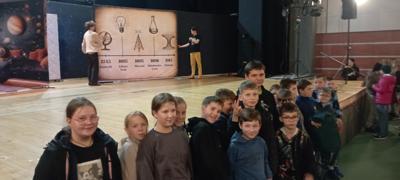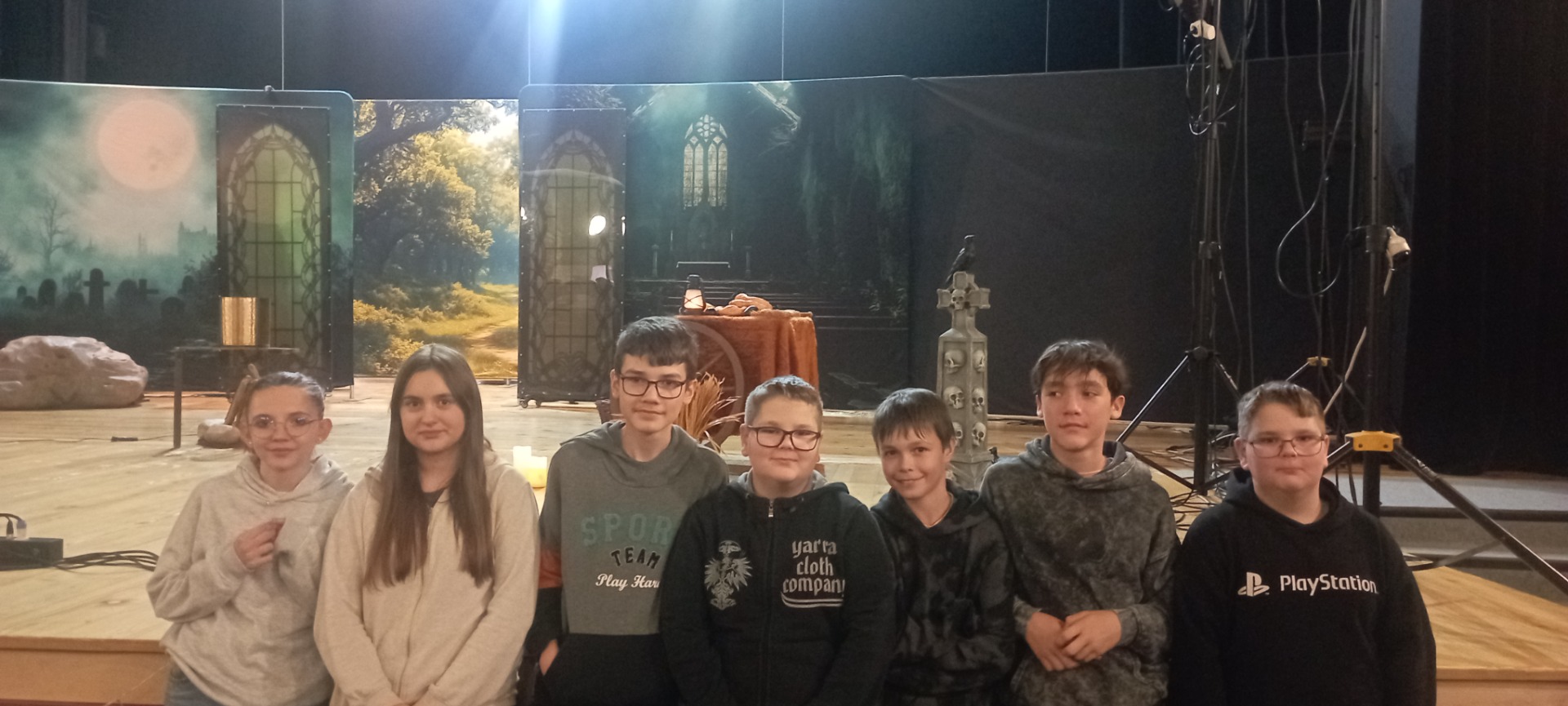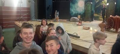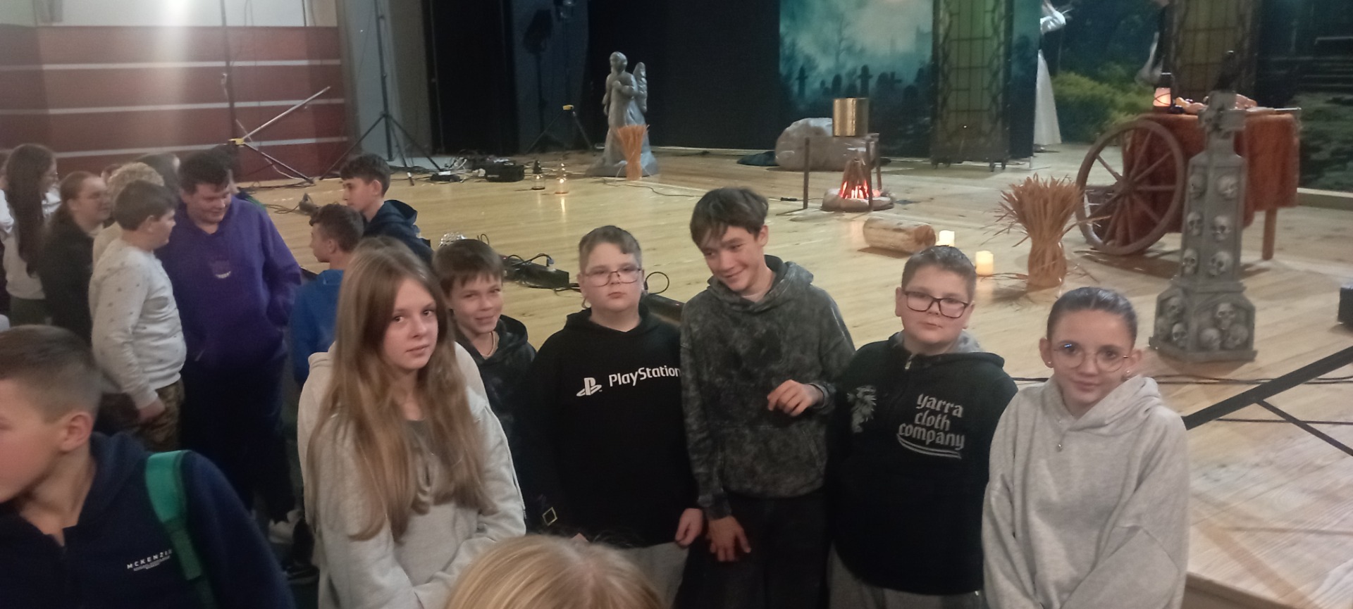 W październiku uczniowie klas V - VIII naszej szkoły mieli okazję uczestniczyć w wyjątkowym wydarzeniu kulturalnym – wyjeździe do RCKP w Krośnie na spektakle teatralne „Podróż w czasie” oraz „Dziady cz. II” w wykonaniu aktorów z Teatru Współczesnego w Krakowie. Celem wycieczki było rozwijanie zainteresowań teatralnych, kształtowanie wrażliwości estetycznej oraz poznanie zasad zachowania się w instytucjach kultury. Dla wielu uczniów była to pierwsza okazja, by zobaczyć profesjonalne przedstawienie na żywo. Spektakle wzbudziły ogromne emocje – zachwyciły zarówno grą aktorów, jak i barwną scenografią oraz muzyką.
