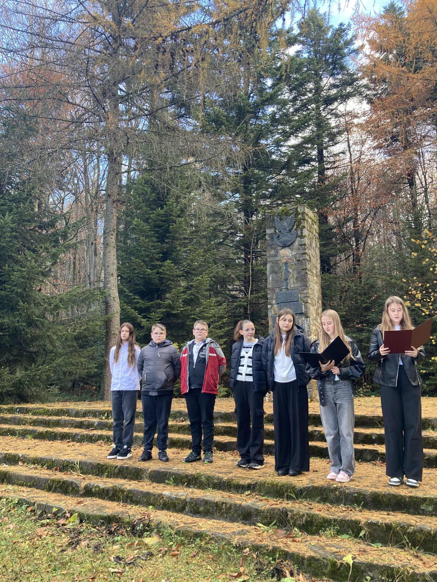 Uczniowie zaprezentowali krótki montaż słowno-muzyczny, przypominający o wartości pamięci, wolności i pokoju.