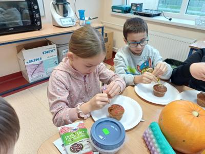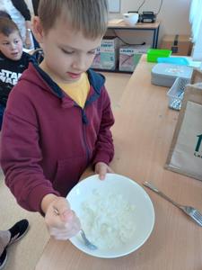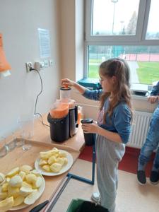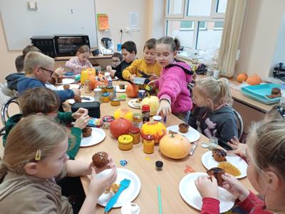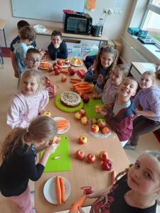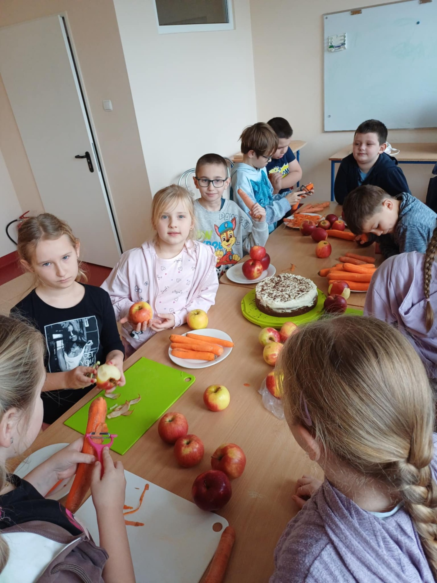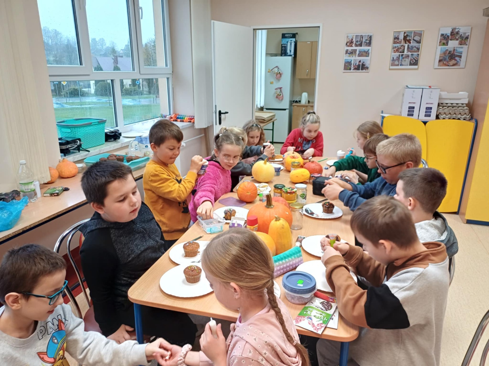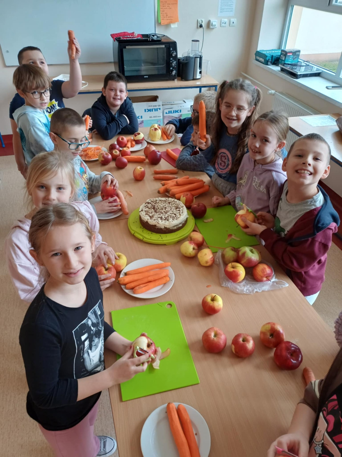 Jesień zawitała do naszej klasy z całym koszykiem kolorów, zapachów i witamin! Uczniowie klasy 2 postanowili sprawdzić, jak pyszna może być ta pora roku i zamienili lekcje w prawdziwe kulinarne warsztaty. Zajęcia były również wspaniałą okazją, aby wziąć udział w konkursie ,,Mamy kota na punkcie mleka!” i odbyły się w ramach Programu dla szkół z wykorzystaniem sprzętu zakupionego z programu Laboratoria Przyszłości.