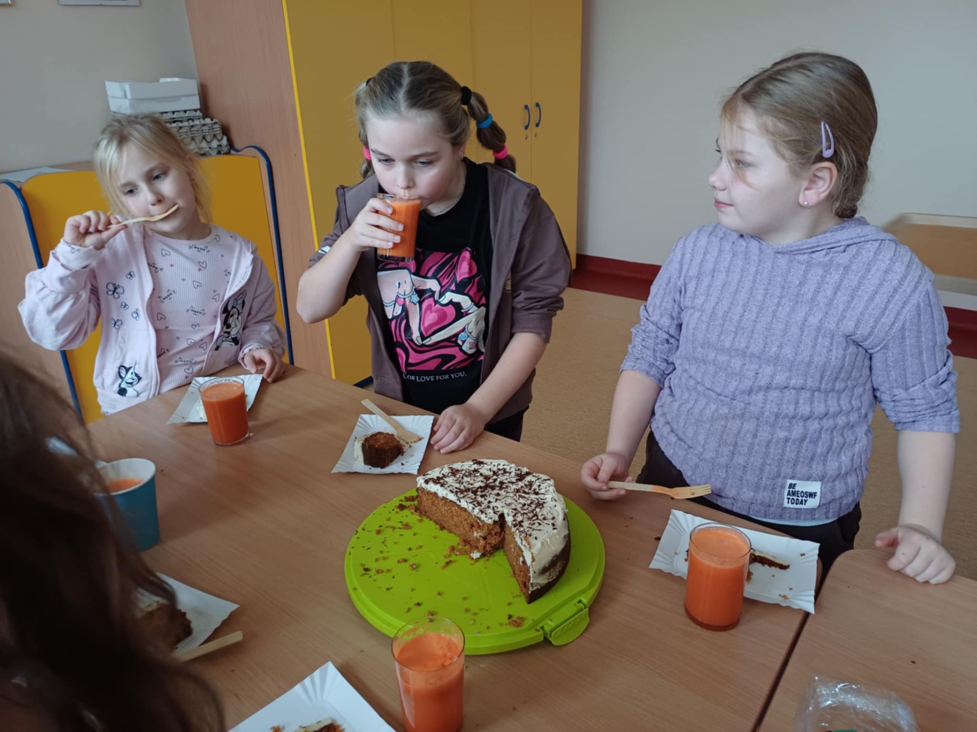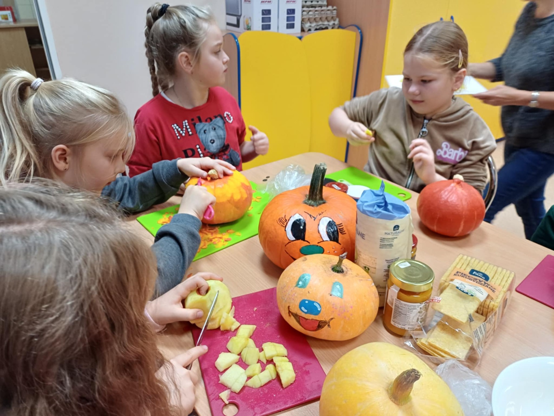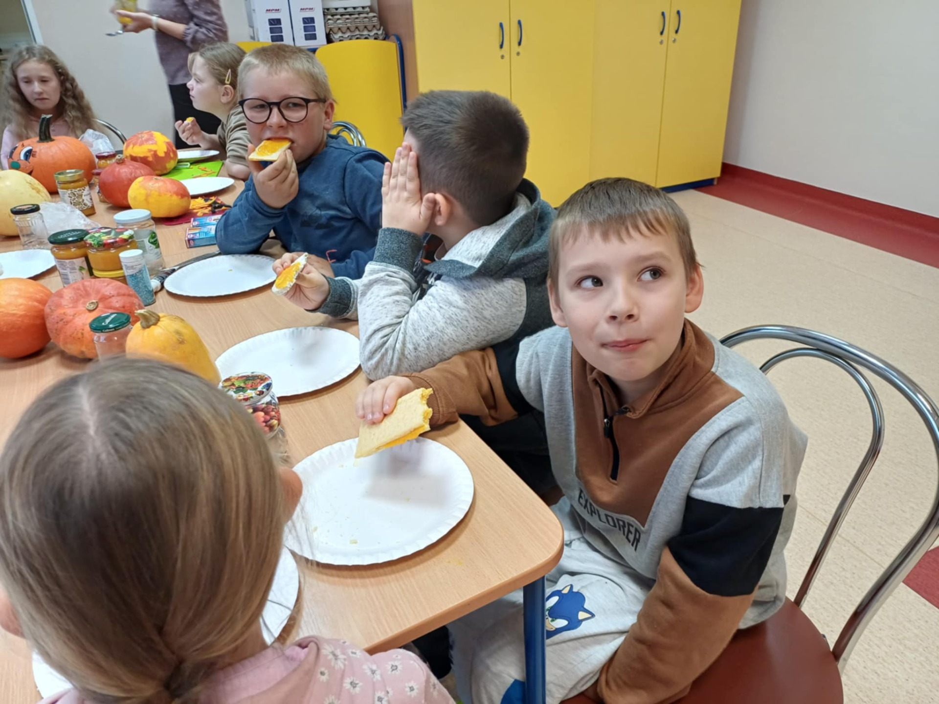 Podczas pracy dzieci dowiedziały się, że witaminy z jesiennych warzyw i owoców pomagają nam mieć dużo energii i uśmiechu, nawet w chłodne dni. A kiedy przygotowanie smakołyków dobiegło końca, przyszedł czas na najprzyjemniejszą część – degustację!😋