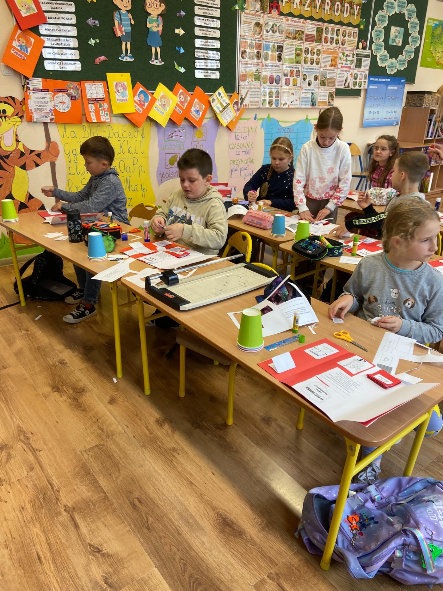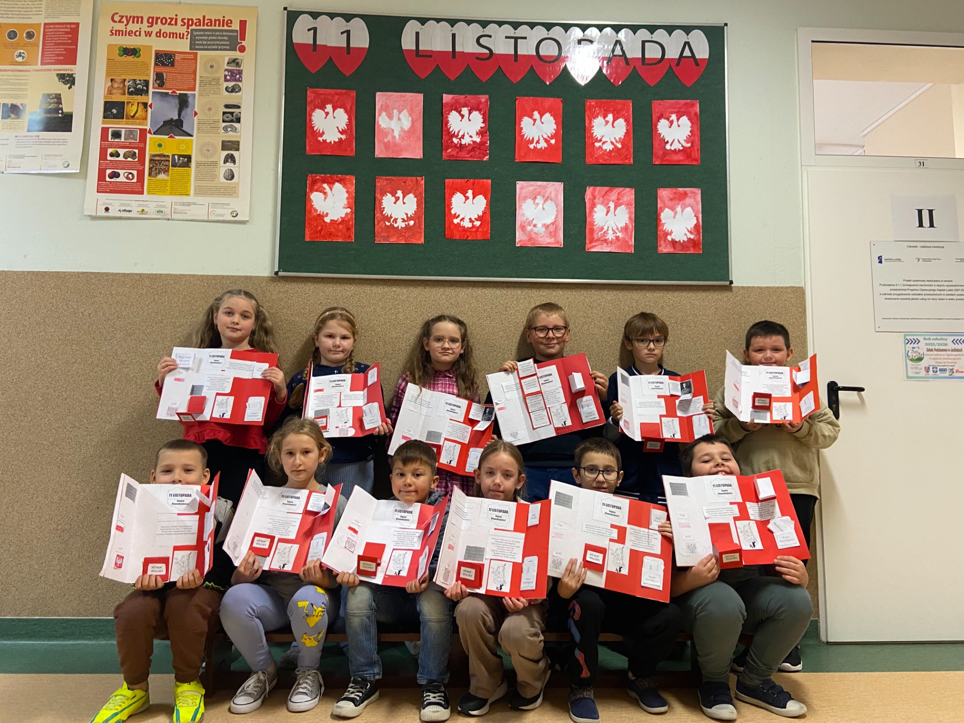 Z okazji Narodowego Święta Niepodległości uczniowie klasy 2 przygotowali wyjątkowe prace plastyczno-techniczne, które stały się wyrazem patriotyzmu i radości z obchodzonego święta. Dzieci z zaangażowaniem tworzyły dekoracje inspirowane symbolami narodowymi. Każda praca odzwierciedlała ich kreatywność, staranność oraz rosnącą świadomość historyczną. Przygotowane przez drugoklasistów ozdoby wprowadziły podniosły i uroczysty nastrój. Uczniowie mieli również okazję porozmawiać o znaczeniu wolności oraz tradycji związanych z 11 listopada, co pozwoliło im lepiej zrozumieć wagę tego święta.